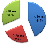 Figure 5 : Répartition des sages-femmes interrogées selon leur nombre d’années d’exercice.