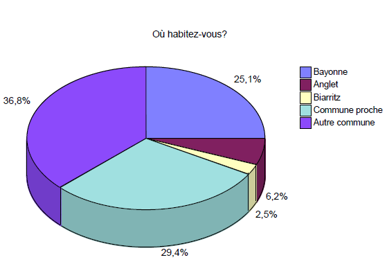 – 34% des personnes ayant répondu au questionnaire habitent le cœur de l’agglomération : Bayonne (25%), Anglet (6%) et Biarritz (2,5%), (cf. graphique 1).