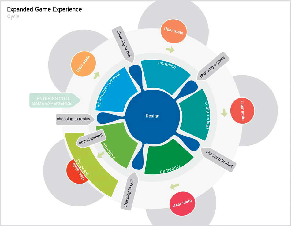 Additionally, it is not enough to look at the adoption threshold of an experiential product. Instead, we should examine the various thresholds of use within the cycle of the expanded gaming experience (Kultima & Stenros, 2010, p. 67).