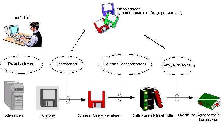 La chaîne de traitement de tout projet de WUM est similaire à celle standardisée en fouille de données. Elle hérite donc les principales phases de préparation de données, de fouille de données, et d’analyse des résultats.