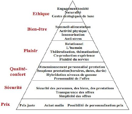En partant du principe que ces prestations sont aujourd’hui garanties par la plupart des acteurs du tourisme, il faut maintenant s’attarder sur les étages supérieurs de la pyramide. Il apparait qu’ils relèvent plus de l’humain : « Dimension personnalisé de la prestation », « personnalité de l’offre », « co-production », « thématisassions » qui sont autant de termes qui regroupent l’idée de prendre le contrôle du voyage. Ces mots s’intègrent parfaitement dans l’univers du tourisme sur mesure, ce qui explique le succès de ce dernier.