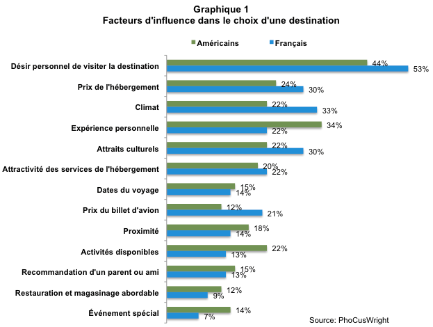 Figure 5 : Facteurs d’influence dans le choix d’une destination