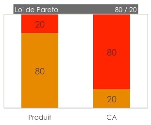 Les 80% des produits restants sont alors délaissés car ils représentent trop d’efforts pour des marges réduites, voire inexistantes. Bien sûr, la proportion des 80% dépend du métier, et elle est dans beaucoup de cas proche de 90%. Quoiqu’il en soit, cette loi permet de modéliser un bon nombre de situations.