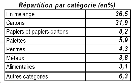 La gestion des déchets des centres commerciaux est une problématique importante, en plus des déchets alimentaires que l’on connait, s’ajoute les déchets inhérents aux livraisons comme énumérés dans le tableau ci contre.