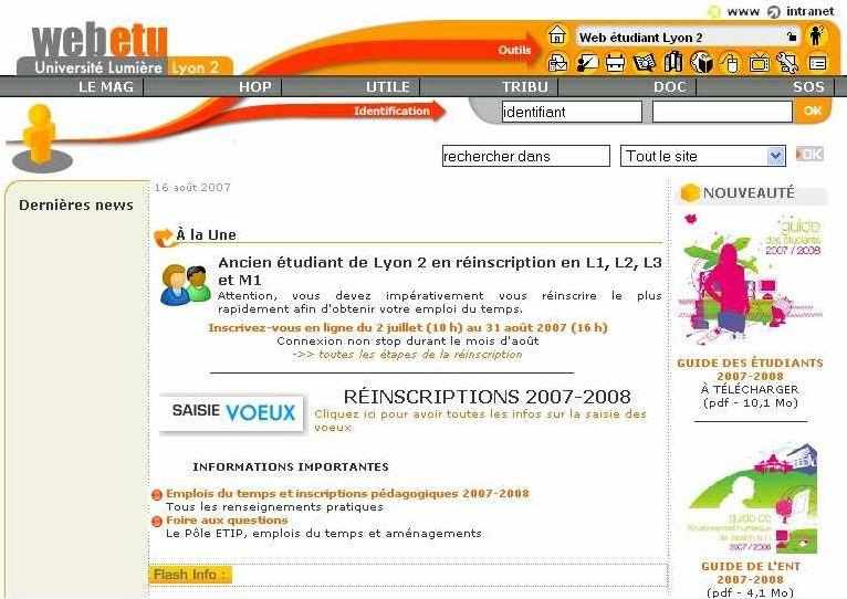 La diffusion d’informations : par la page d’accueil du Webetu permettant la diffusion d’informations tel que des offres de stages, mais aussi l’annuaire et la WebTV.