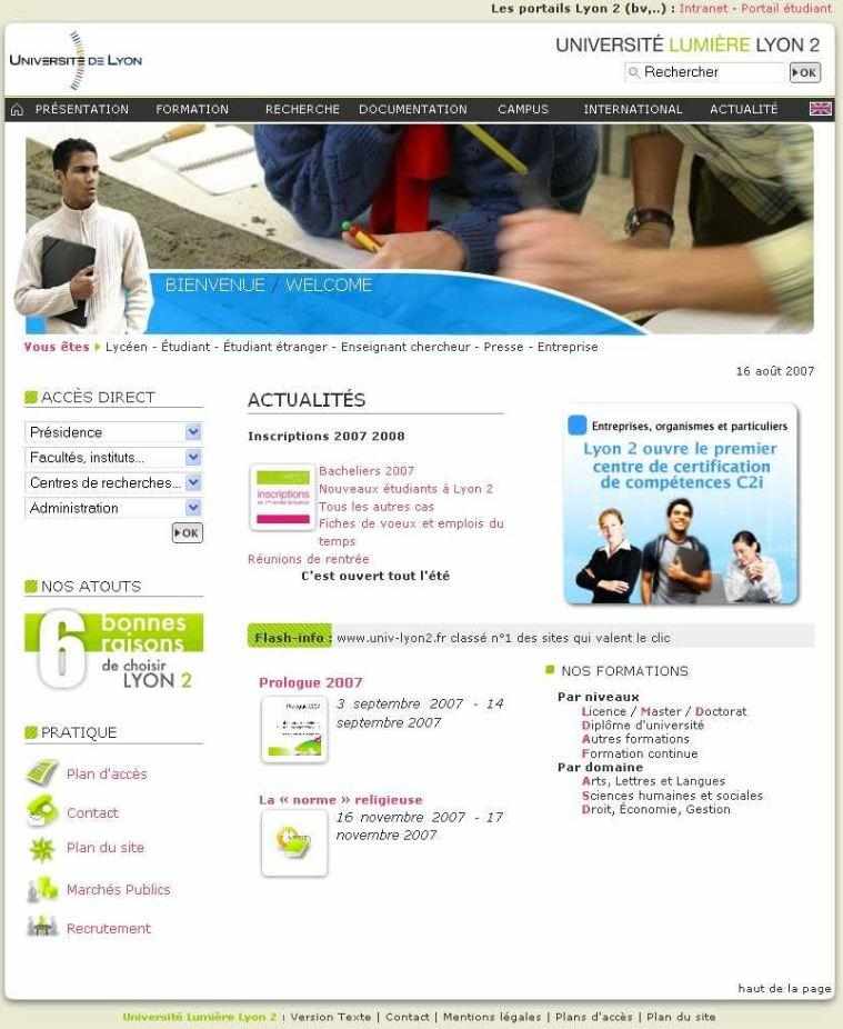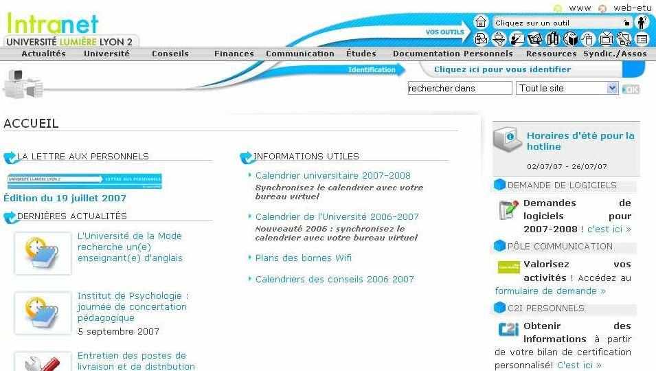 L’ENT de Lyon II contient 3 portails (institutionnel, personnel et étudiant) et les sites internet des facultés.