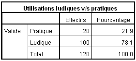 Tableau 3 : Proportion d’utilisations pratiques et ludiques d’Internet