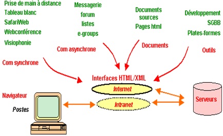 Internet permet un accès à l’ensemble des ressources humaines (communication), documentaires (documents) et administration (outils) nécessaires à la réalisation de la formation. La standardisation démultiplie considérablement les possibilités de diffusion.