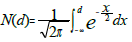 N(d) correspond à la probabilité qu’une variable normale centrée réduite x ait une valeur inférieure ou égale à d. C’est donc la fonction de répartition d’une variable x qui suite une loi normale centrée réduite N(0,1), ou loi de Laplace-Gauss.