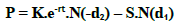 Selon la formule de Black & Scholes, la valeur d’un call (C) s’exprime par l’équation suivante : C = S.N(d1) – K.e-rt.N(d2)