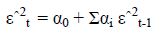 Dans le résultats de modèle ARCH rappelons que, sous l’hypothèse nulle d’homoscédasticité, la statistique TR2 suite une loi de Khi deux à q degrés de liberté, ou T est le nombre d’observation de la série εˆ2t et R2 est le coefficient de détermination associé à :
