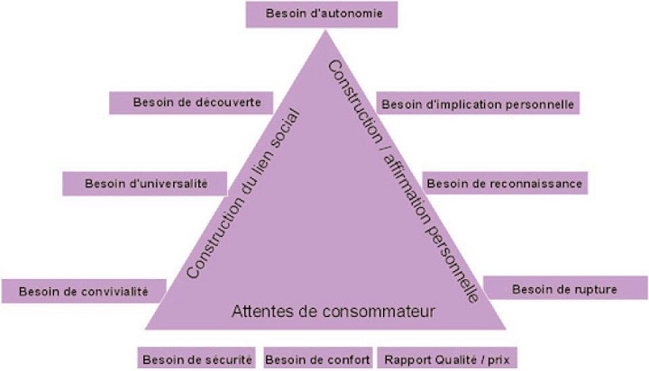 Nous rappelons le triptyque des motivations de départ énoncé dans la première partie et dégagé suite aux travaux de recherche d’ODIT France. Ce triptyque se compose d’un besoin de construction de lien social, d’un besoin d’affirmation personnelle et d’attentes de consommateurs et se décompose en toute une série de besoins intermédiaires.