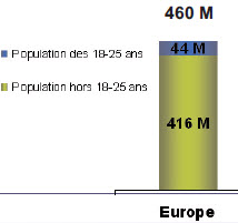 Le marché des jeunes touristes de 18 à 25 ans européens, représente environ 10% de la population européenne avec près de 44 millions de personnes pour une population totale européenne de 460 millions (hors France).