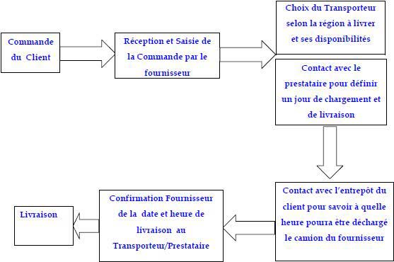 Le processus semble simple rapide et logique mais il demande une participation efficace de la part de tous les partenaires : le client, le fournisseur, les transporteurs, la réception des entrepôts…