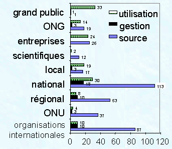 Dans les 22 premiers chapitres thématiques de l’Agenda 21, 185 articles citent le mot information. Christian Brodhag les a analysés en identifiant les acteurs sources d’informations, les cibles et les organisations responsables de leur traitement :