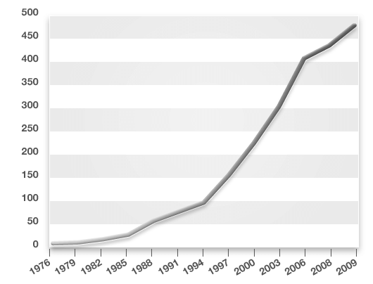 Les schémas ci-dessous nous permettent d‘estimer la croissance de l’activité de l’entreprise Décathlon et l‘importance du marché étranger pour son chiffre d‘affaire. Ainsi selon les schémas, en 2009 le nombre de magasins Décathlon dans le monde entier atteint 500. Le groupe fait quasiment autant de CA à l‘étranger, donc les exportations jouent un rôle important pour le développement de l’entreprise.
