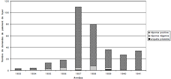 Figure II: Nombre de demandes de paiement de loyer formulées par les locataires au conseil de ville entre 1933 et 1941