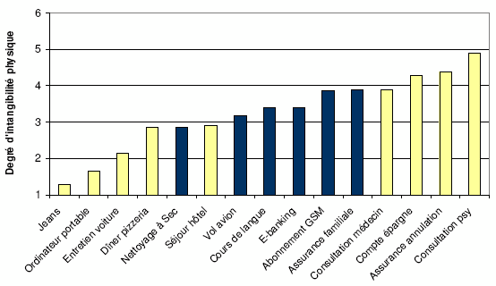Bielen et Sempels (2004) ont donc travaillé à la réalisation d’une nouvelle échelle de mesure d’une offre globale de services, en y incorporant deux dimensions de l’intangibilité, l’intangibilité physique et l’intangibilité mentale.
