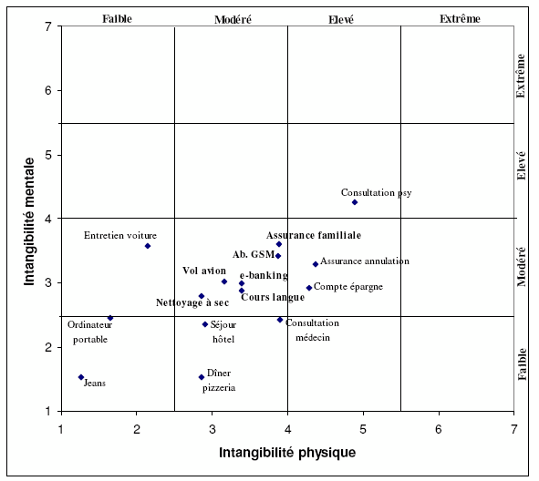 Laroche et al. (2001) ont quant à eux proposé une échelle tri-dimensionnelle du degré d’intangibilité des services.