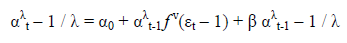 – Pour λ = v = 2 et b=c=0, la relation se réduit à la définition d’un processus GARCH usuel.