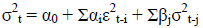 σ2t+T = α0 + Σαiε2t+T-i + Σβjσ2
