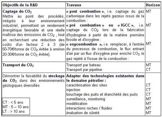 Tableau 1 : Les priorités de recherche captage et stockage de CO2
