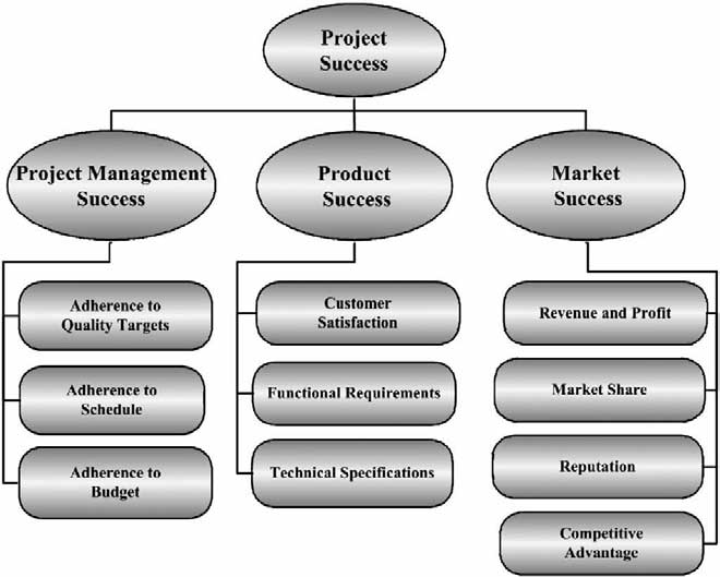 Deux distinctions doivent être faites lorsqu’il s’agit d’étudier le succès de projet (Cooke-Davies, 2002). Premièrement, il faut faire la distinction entre le succès de projet mesuré par rapport aux objectifs globaux du projet, et le succès de la gestion de projet lié aux mesures traditionnelles de performance portant sur le coût, le temps et la qualité.