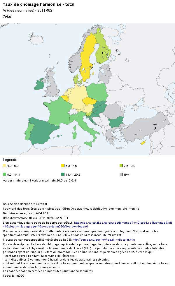 Image 1: Les taux de chômage en Europe en février 2011 (source: Insee)