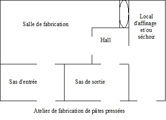 – les locaux « propres » tels la salle de fabrication ou les locaux de séchage et d’affinage, doivent être séparés des locaux dits « sales » (sas d’entrée, laverie…), qui sont sources de contaminations potentielles (figure 4). Pour les eaux usées et le lactosérum, un système d’évacuation approprié doit être prévu.