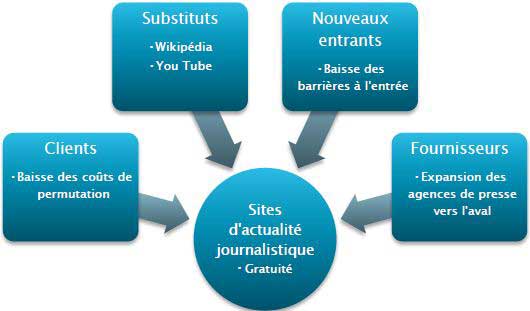 Figure 16. Le modèle des cinq forces de Porter appliqué au marché de l’actualité en ligne.