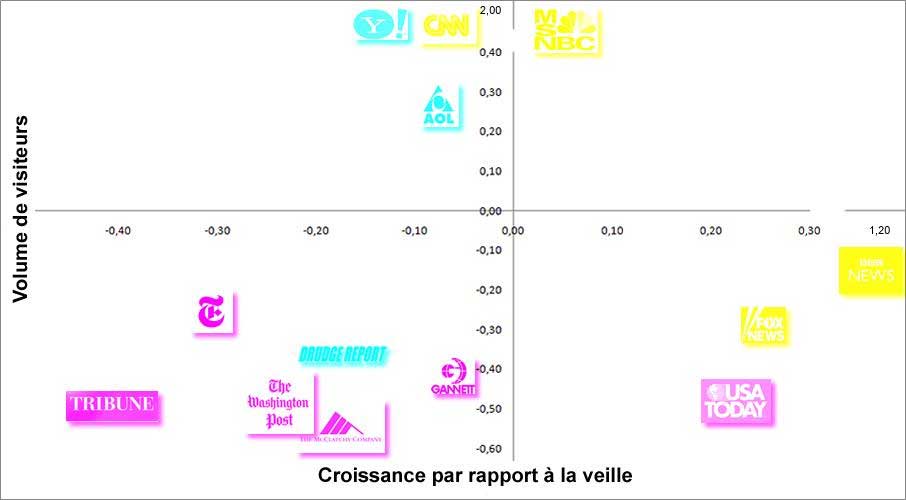 Par ailleurs, ils ne représentent pas pour les internautes des sites de référence, puisque, à l’exception de USA Today, ils ont enregistré une croissance des visites inférieure à la moyenne.