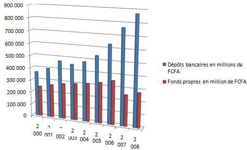 | Fin de périodes | Montant dépôts en millions de FCFA | Fonds propres en million de FCFA |