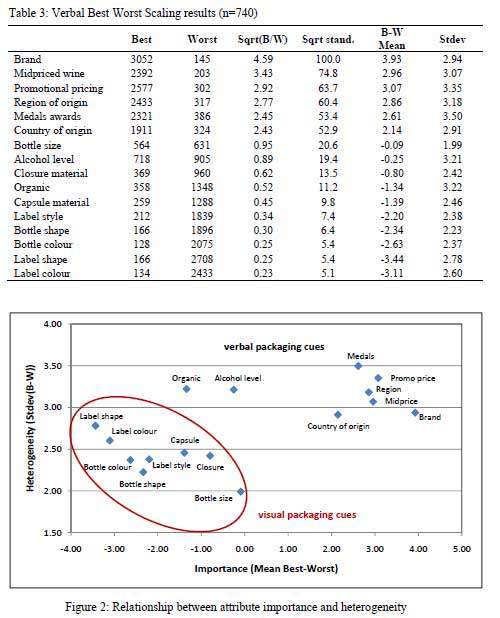 Source: “Best Worst scaling: a simple method to determine drinks and wine style preferences” Steven Goodman, Larry Lockshin, Eli Cohen, International Wine Marketing Symposium Sonoma, 2005