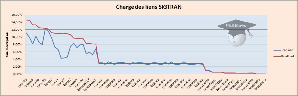 Le graphique suivant montre une vue globale des surcharges et taux d’occupation des différents liens de signalisation sur IP (SIGTRAN).