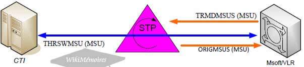 Nous allons utiliser les données précédentes pour la détermination des MSUs (ISUP et SCCP) traités dans un STP en fonction des MSUs qui l’atteignent. La figure 20 montre l’échange des messages entre le STP et les deux entités (CTI et MSC NGN). On note « Cap » la capacité du traitement de messages en pourcentage, qui désigne l’ensemble des MSUs subissant des traitements dans le STP avant d’être routé vers les nœuds destinataires.