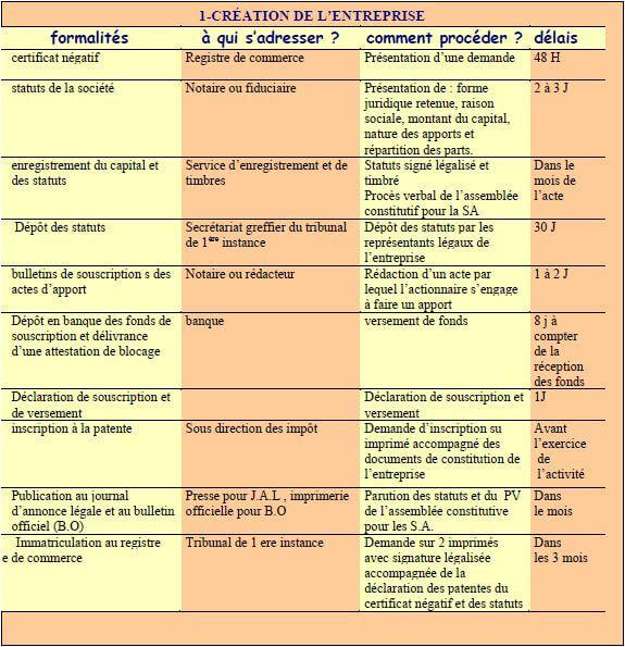 ** Formalités administratives et juridiques pour la constitution de la société