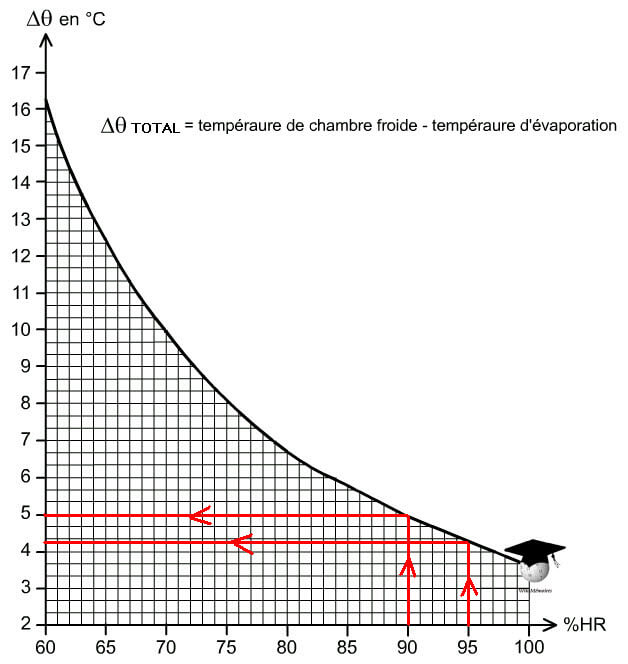 Pour une humidité relative de 90% correspond une vaporisation de 5°C Pour une humidité relative de 95% correspond une vaporisation de 4,2°C.