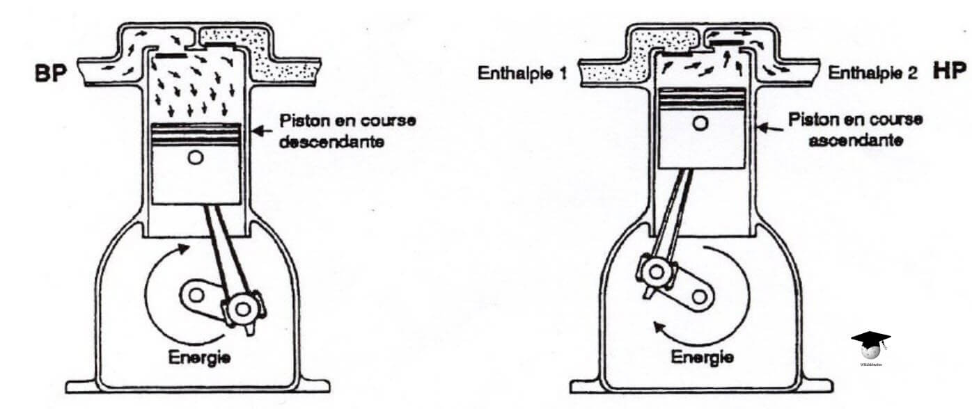 La compression du fluide frigorigène se fait par la réduction du volume de la chambre de compression.