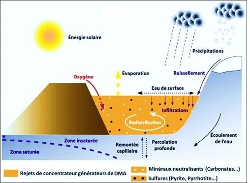 En effet, ces eaux acides riches en contaminants rejoignent les eaux de surface (rivière ou lac) et les eaux souterraines en entraînant une détérioration de leur qualité (Sracek et al. 2010).