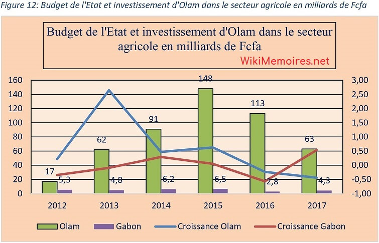 Ce qui fait d’Olam Palm l’un des plus grands investisseurs privés au Gabon. La part du budget de l’Etat gabonais consacré à l’agriculture est en moyenne très faible comparée à celle d’Olam. En 2017, quand Olam investit 63 milliards, le gouvernement ne consacre que 4.3 milliards.