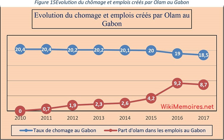 Nous pouvons observer une décroissance du chômage au Gabon induit par un accroissement de l’emploi au sein d’Olam.