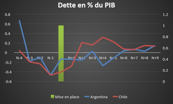 Figure 13 – Comparaison de l’évolution des réserves et la dette entre l’Argentine et le Chili