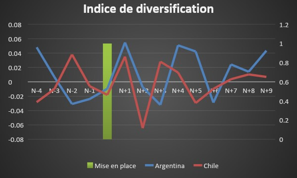 Figure 14 – Evolution de l’indice de diversification et l’IDH pour l’Argentine et le Chili