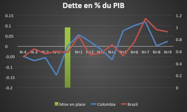 Figure 15 – Comparaison de l’évolution des réserves et la dette entre la Colombie et le Brazil