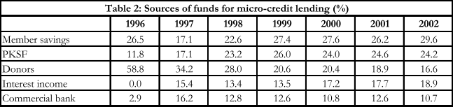 Progressivement, les IMF s’appuient davantage sur des emprunts auprès du PKSF et de banques commerciales, sur l’épargne de leurs clients et sur les revenus de leurs taux d’intérêt.