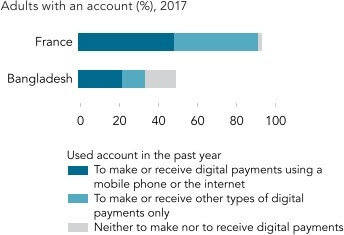 Utilisation de comptes bancaires par les adultes au Bangladesh et en France, 2017