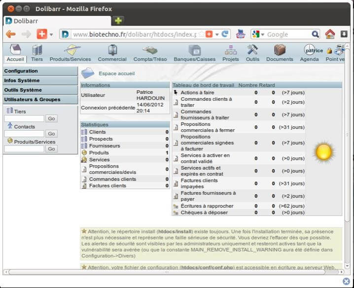 Figure 8: Ecran d’un des logiciels de gestion de stock: Dolibarr ( Dolibarr, 2021)