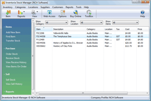 Logiciel de gestion de stock sous licence copyright (logiciel NCH), Inventoria a été conçu pour offrir utilisation simple et intuitive.