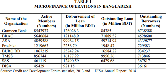 Source : Bhuiya, M. M. M. , Khanam, R. , & Rahman, M. M. Microfinance Operations in Bangladesh. An Overview. Journal of Applied Business and Economics Vol. 18(3). (2016).