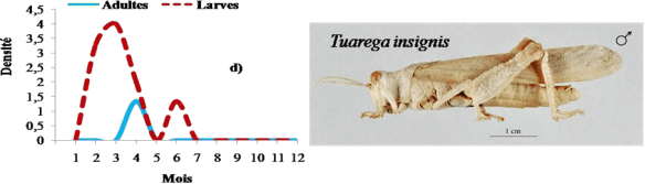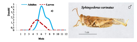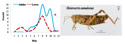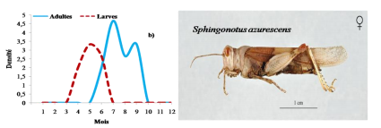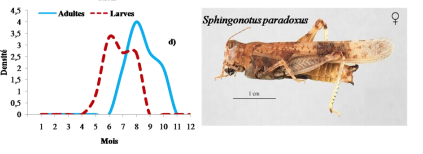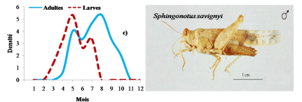 De juin à septembre les fluctuations de la densité imaginale de Sphingoderus carinatus, Sphingonotus azurescens, Sphingonotus savignyi et Sphingonotus paradoxus sont importantes.